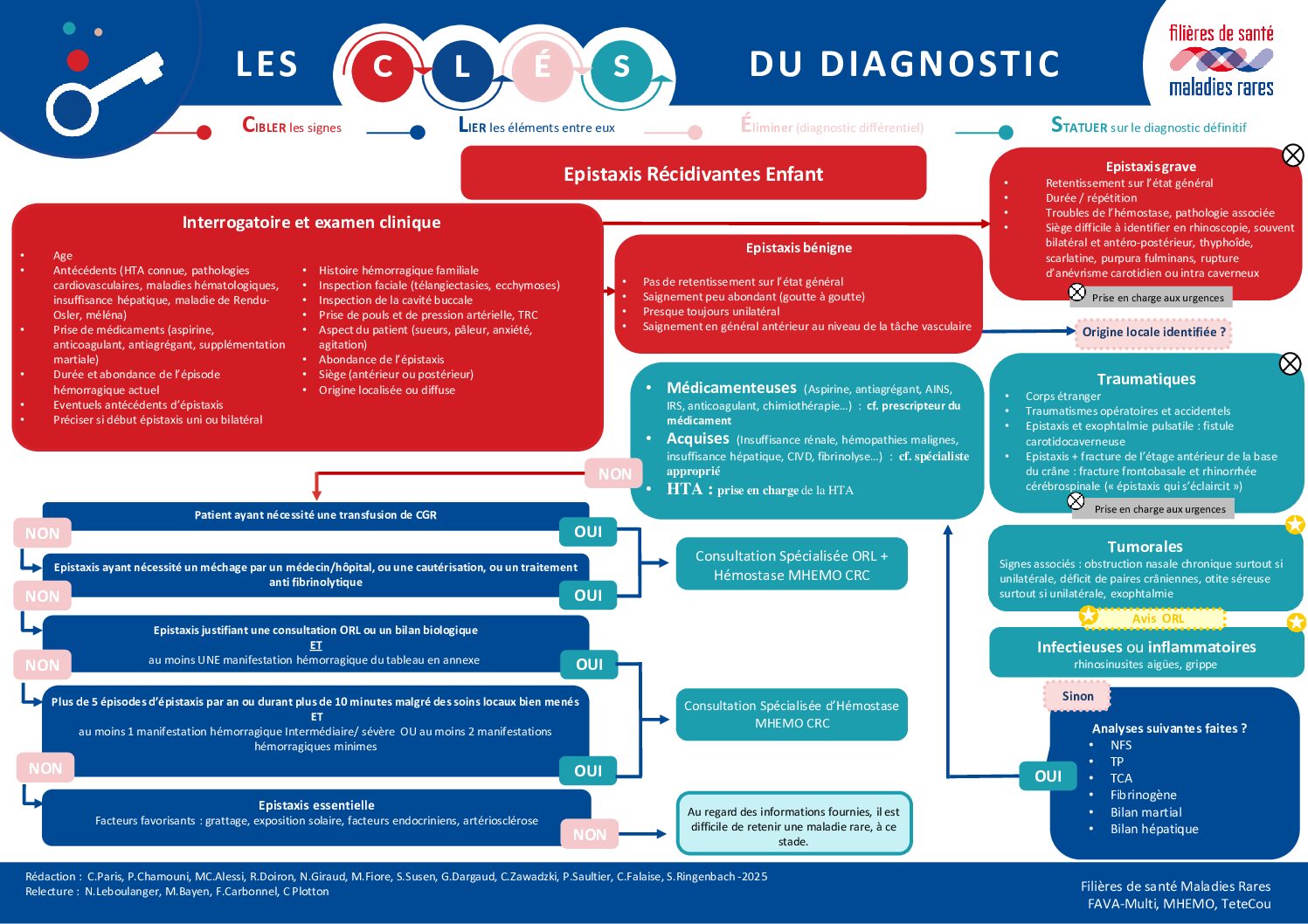 Les experts ont identifié dans ce travail les éléments cliniques ou biologiques qui doivent amener à solliciter un avis spécialisé dans un centre expert maladies rares, et ce, dans le but de réduire l’errance diagnostique dans les maladies rares dont l’expression initiale est une épistaxis récidivante chez l’enfant. Nos experts sont à votre disposition pour répondre à vos questions, n’hésitez pas à nous les transmettre via le formulaire de contact.